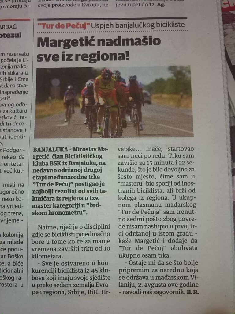 Osjećam se sretnim kada sjednem na bicikl i pređem 30-ak kilometara udišući slobodu, koju mir i priroda oko Banjaluke daju. A, onda svaki drugi dan i trening, 80-100 kilometara.
