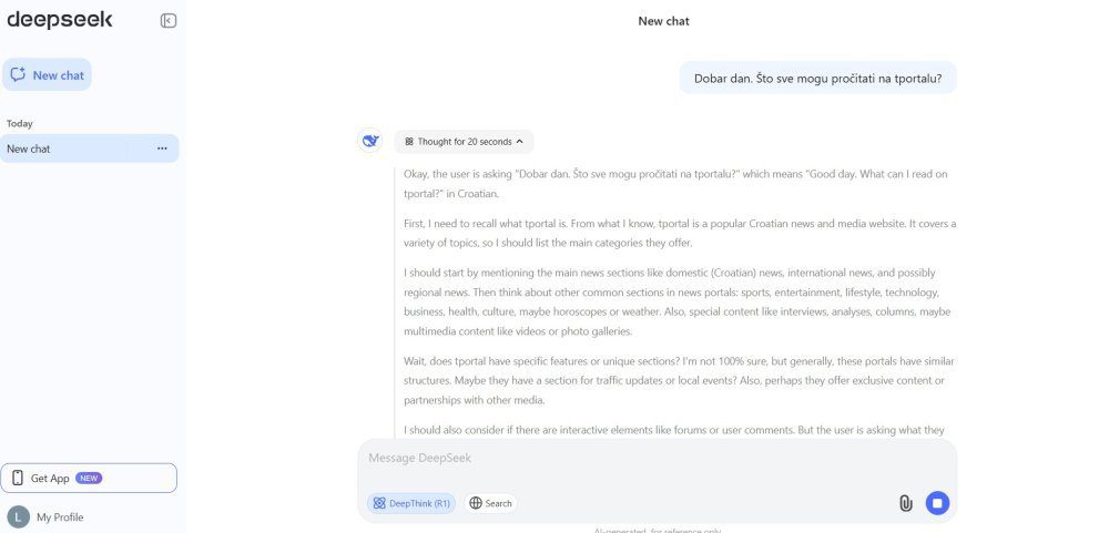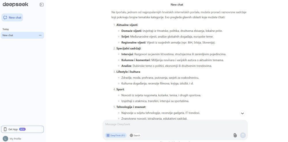 DeepSeek je u ponedjeljak u Appleovom App Storeu u SAD-u pretekao ChatGPT i podigao prašinu širom svijeta. Tokom vikenda taj je startup predstavio model R1, a on navodno može konkurirati OpenAI-ju, tvorcu ChatGPT-ja. Šef OpenAI-ja Sam Altman rekao je da je kineski startup razvio ‘impresivan model’, a Silicijsku dolinu zatekli su niski troškovi njegova razvoja, od samo šest miliona dolara, što je daleko ispod američkih standarda.