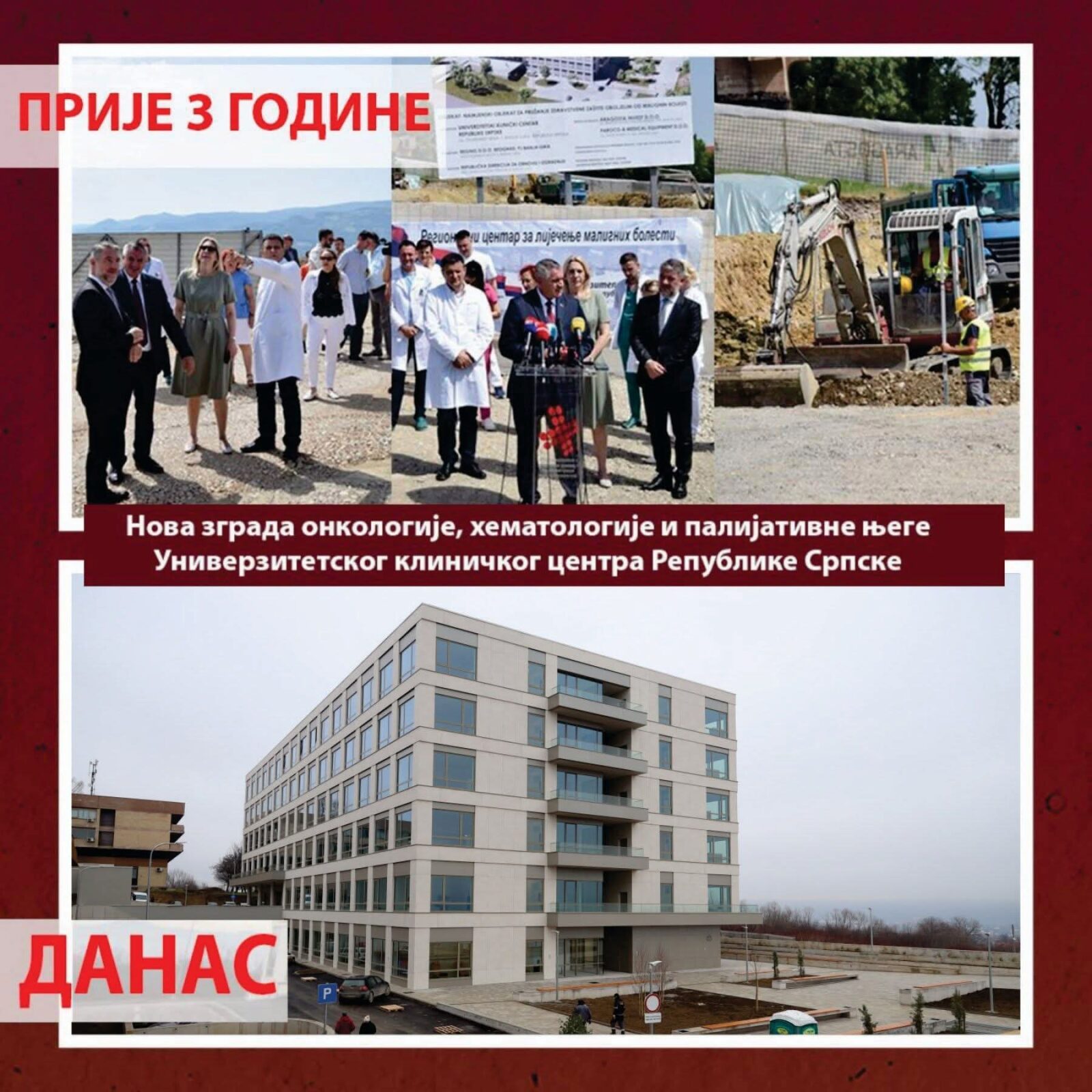 Ponosan sam kada vidim kako danas izgleda, kako je opremljen i organizovan novi objekat našeg Univerzitetskog kliničkog centra Republike Srpske. Osjećam veliko zadovoljstvo što sam imao priliku da svoju ideju i viziju o potrebama naših stanovnika pretvorim u djelo. A samo prije par godina to je bila nemoguća misija. Sjećam se trenutaka kada sam u čizmama hodao po krugu Univerzitetskog kliničkog centra i tražio rješenja za gradnju novih zgrada i potrebnih objekata, usvajanja regulacionog plana, prezentovanja elaborata o potrebi gradnje na sjednici Vlade Republike Srpske, a nakon toga crtanja i gradnje ovog prijeko potrebnog objekta. Ovo je dokaz dobre saradnje Vlade Republike Srpske kao investitora i rukovodioca javne ustanove koji će dati dobar rezultat za naše stanovnike. Potrebe za liječenjem malignih bolesti su sve veće, a ovdje je i prva klinika za palijativnu terapiju u istoriji Republike Srpske i jedna od rijetkih u regionu.