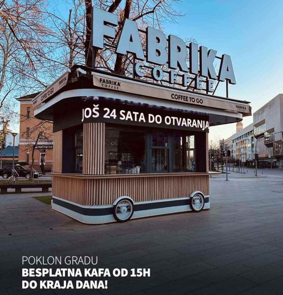 Novi kiosk će nastaviti misiju širenja jedinstvenog mirisa i ukusa kafe po kojem je Fabrika Coffee poznata, te će biti omiljeno mjesto za sve ljubitelje kvalitetne kafe i prijatne atmosfere.