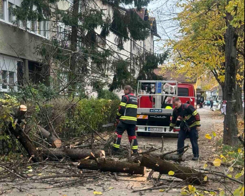 Vatrogasci su, uz asistenciju saobraćajne policije, danas uklonili suho stablo četinara ispred zgrade u ulici Cara Lazara 32/34. Ovo stablo, posađeno prije pola vijeka, osušilo se i prijetilo i prolaznicima i stanarima. Naslovna